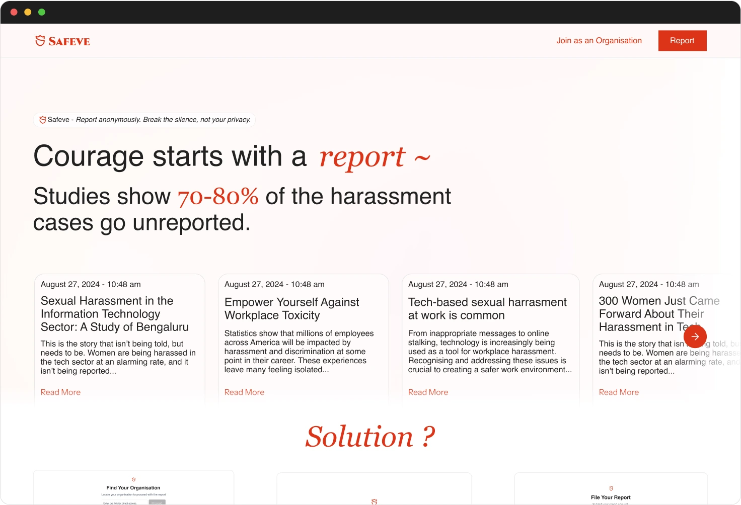 Report anonymously. Break the silence, not your privacy.